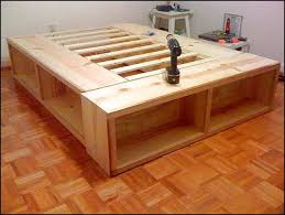 We recommend you to use 3 4 plywood or mdf to build the frame of the bed frame as well as the bottom of the drawers. Though strange sounding at first this diy project gives you a high bed that s easy to get in and out of with tons of storage space down below. King size storage bed.