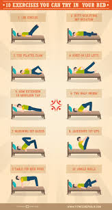 Exercises to do in bed. Brace your core and lower your right leg towards the bed. Similar to using a foam mat or exercise ball bed exercises may help recruit small stabilizing muscles. In one smooth motion press into your hands and feet as you straighten your elbows and lift your hips up toward the ceiling until your body from shoulder to knee is one straight line.